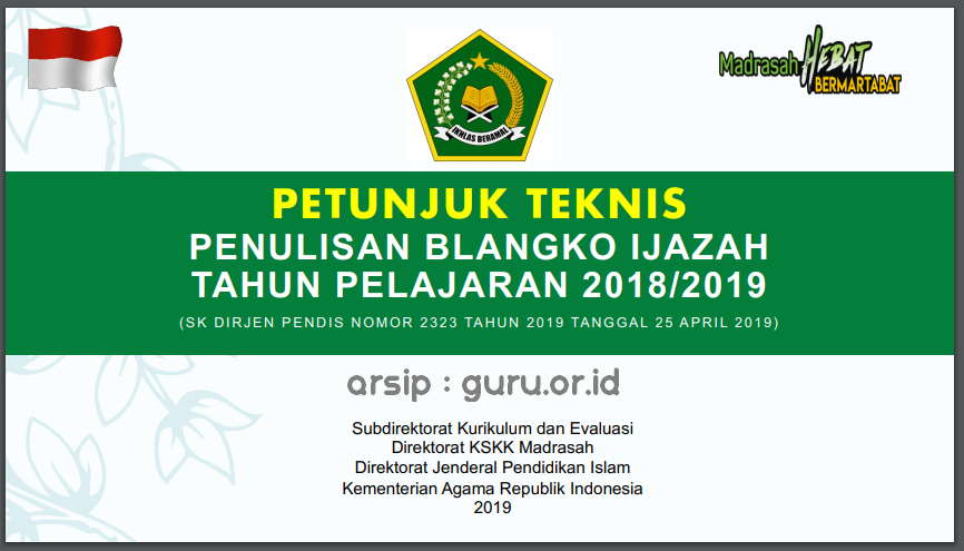 juknis penulisan ijazah ra mi mts ma 2019