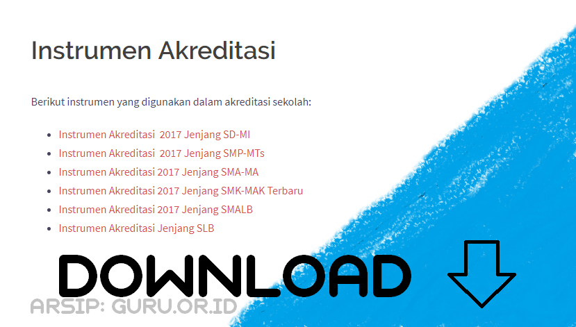 Para pembaca guru.or.id di artikel kali ini kami akan membagikan link download Instrumen Akreditasi Sekolah Madrasah Terbaru 2019 Semua Jenjang SD-MI, SMP-MTs, SMA-MA, SMK-MAK, SMALB, SLB. Sesuai dengan Permendikbud Nomor 59 Tahun 2012 pasal 9 ayat (2) huruf 6, dalam pelaksanaan akreditasi sekolah/madrasah, BAN-S/M merumuskan kriteria dan perangkat akreditasi sekolah/madrasah untuk diusulkan kepada Mendikbud.